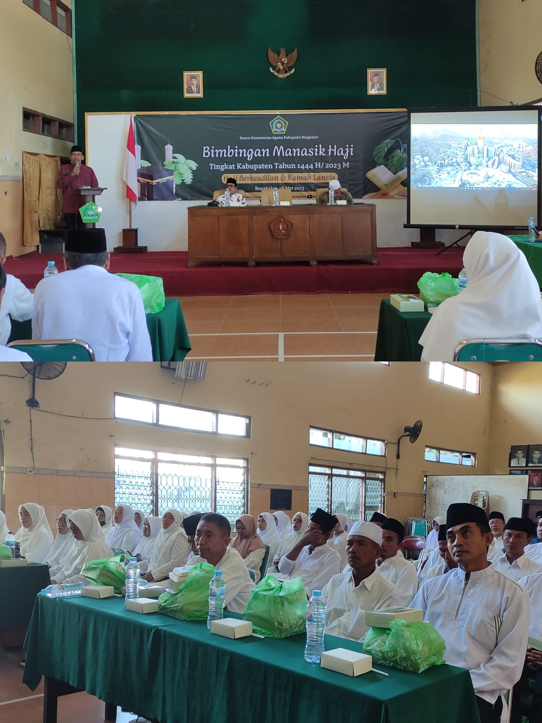 kliksurabaya.co.id-Kantor Kementerian Agama Kabupaten Bangkalan kembali mengadakan bimbingan manasik haji bagi jemaah haji Kabupaten Bangkalan yang akan tergabung pada kelompok terbang (kloter) 36. Hadir membuka acara manasik haji Kepala Kantor Kementerian Agama Kabupaten Bangkalan, Akhmad Sururi, yang sekaligus menyampaikan beberapa pesan dihadapan 57 jemaah.