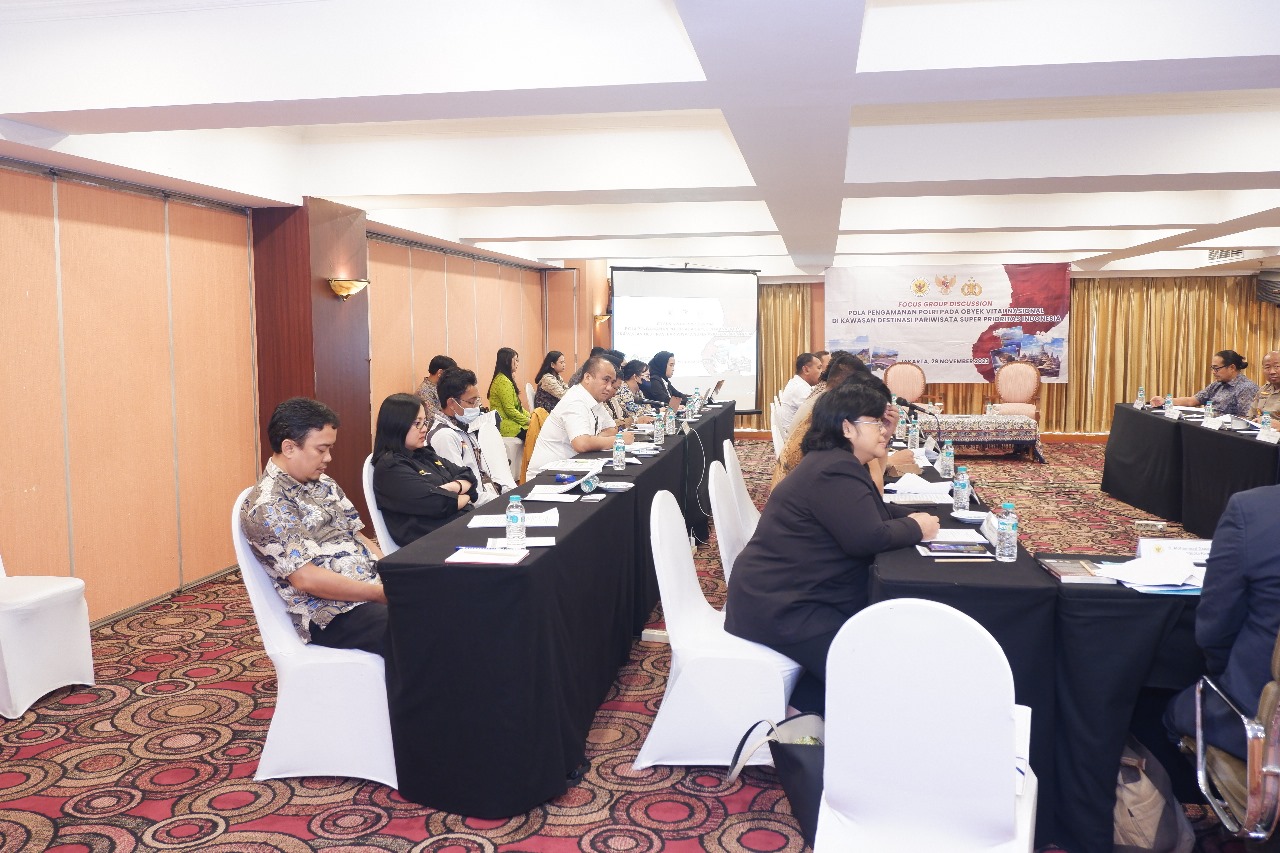 JAKARTA – Kompolnas menggelar Focus Group Discussion (FGD) hasil penelitian yang dilakukan Anggota Kompolnas, H Mohammad Dawam, SHI, MH, beserta Tim Peneliti dengan judul ‘Pola Pengamanan Polri pada Obyek Vital Nasional di Kawasan Destinasi Pariwisata Super Prioritas Indonesia’ di Hotel Ambhara, Jakarta Selatan, Rabu (29/11/2023).